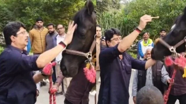 राजा भइया के अस्तबल में पहुंचा नया ट्रोजन,तिलक लगाकर उतारी आरती