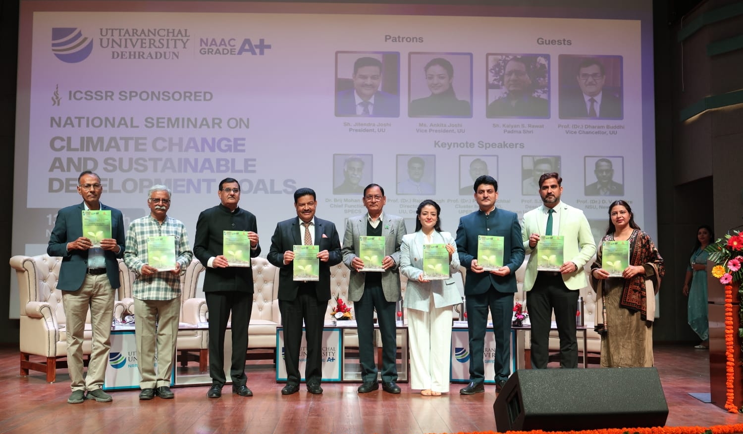 देहरादून।उत्तरांचल विश्वविद्यालय ने 13–14 नवंबर को जलवायु परिवर्तन और सतत विकास लक्ष्य विषय पर दो दिवसीय आईसीएसएसआर प्रायोजित राष्ट्रीय संगोष्ठी का आयोजन किया।कार्यक्रम का उद्घाटन मुख्य अतिथि पद्मश्री डॉ. कल्याण सिंह रावत,अध्यक्ष जितेंद्र जोशी,उपाध्यक्ष अंकिता जोशी और कुलपति प्रो. (डॉ.) धरम बुद्धि की उपस्थिति में हुआ।